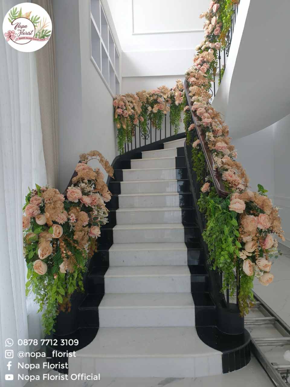 Selain itu, kami juga dapat membantu Anda untuk menambahkan hiasan tambahan seperti daun, atau aksesori dekoratif lainnya yang akan membuat tangga terlihat lebih menarik dan unik.