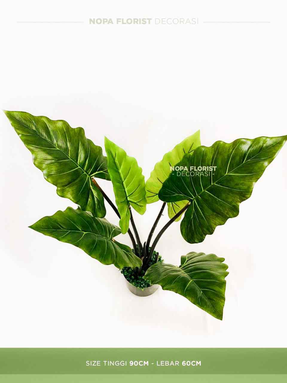 • Daun Lebar dan Hijau Tua mix hijau muda : Daun besar berbentuk hati dengan urat dan tekstur yang alami.